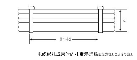 电缆绑扎成束时,一般是根据线缆的粗细程度来决定两根扎带之间的距离。扎带间距应为电缆束直径的3-4 倍