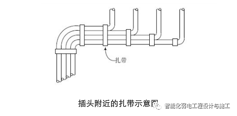 对于插头处的线缆绑扎应按布放顺序进行绑扎,防止电缆互相缠绕,电缆绑扎后应保持顺直,水平电缆的扎带绑扎位置高度应相同,垂直线缆绑扎后应能保持顺直,并与地面垂直。